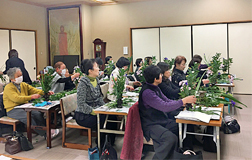 1月25日(土)に女性会の定例研修会で仏華を生けました。仏華とは仏前にお供えする花のことで、浄土真宗では仏華は仏さまの慈悲の心を表します。供華は仏教が日本に伝わったころからの仏さまに美しい草花をささげる行いです。