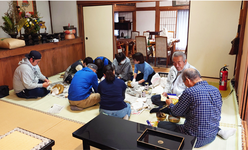 午後1時30分から3時ごろまで、仏具のお磨きのほか、境内地の清掃、会館のお掃除・窓磨きなどです。終わったあとは、会館でお茶を飲みながら自己紹介や日頃思っていることなど一言づつ話をします。