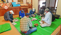 伝統工芸士高橋智山さんにわざわざ福岡からお出でいただき仏具磨きのご指導をしていただきました。今までは磨き粉を使っていましたが、どう磨いても仏具の細かいところに白い粉が残ってしまいます。今回その白い粉を取り除き、真鍮みがきのブラシで磨いていきました。高橋智山さんは仏具専用の天然棕梠はけを作っておられる工芸士で本山の掃除の指導もおこなっておられます。当日福岡から5時間かけて来てくださり、またその日のうちに帰られました。